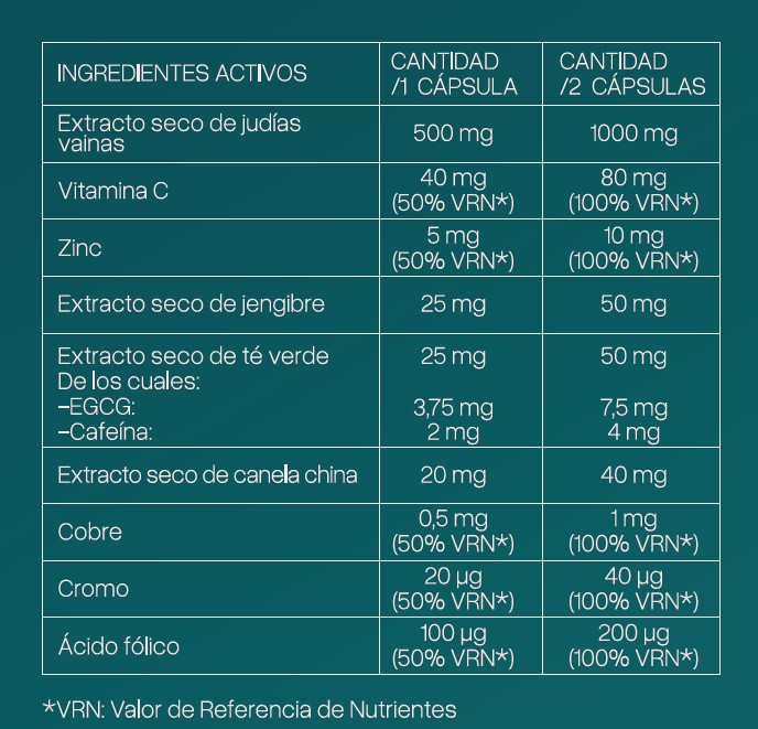 Gracias a su fórmula con extracto de judía blanca, canela, jengibre, vitamina C y zinc: